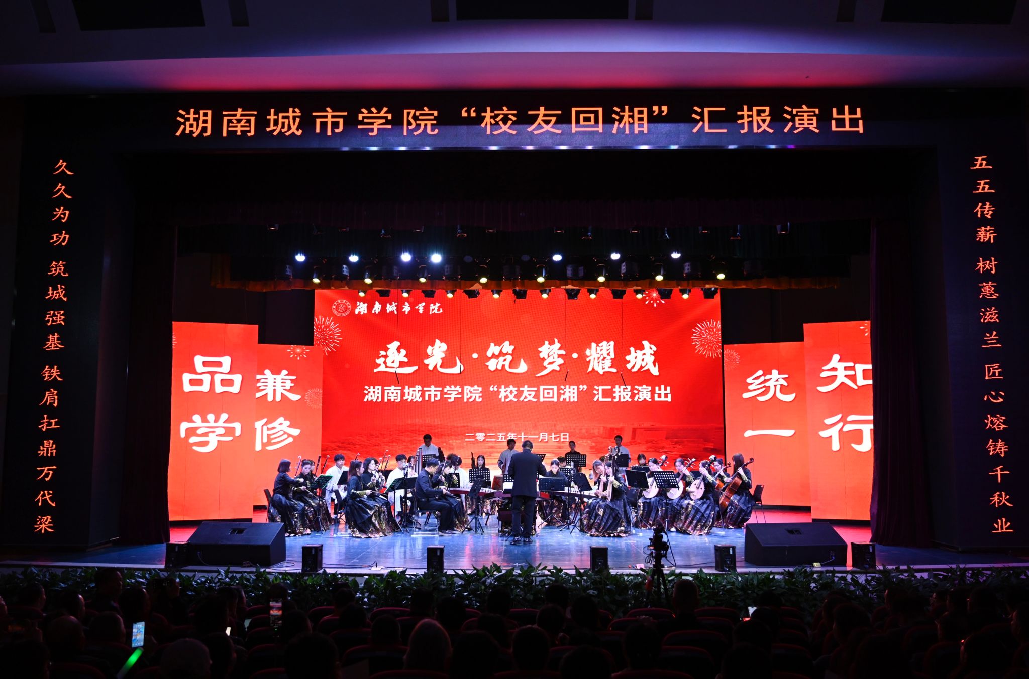 本网讯(通讯员 周贵湘 摄影 程强)11月7日晚,“逐光•筑梦•耀城”米兰体育·米兰官方网站“校友回湘”汇报演出在音乐厅精彩开演,全体在家校领导、嘉宾、校友代表及师生400余人齐聚一堂,共赴这场融合爱校情怀与艺术魅力的视觉盛宴。