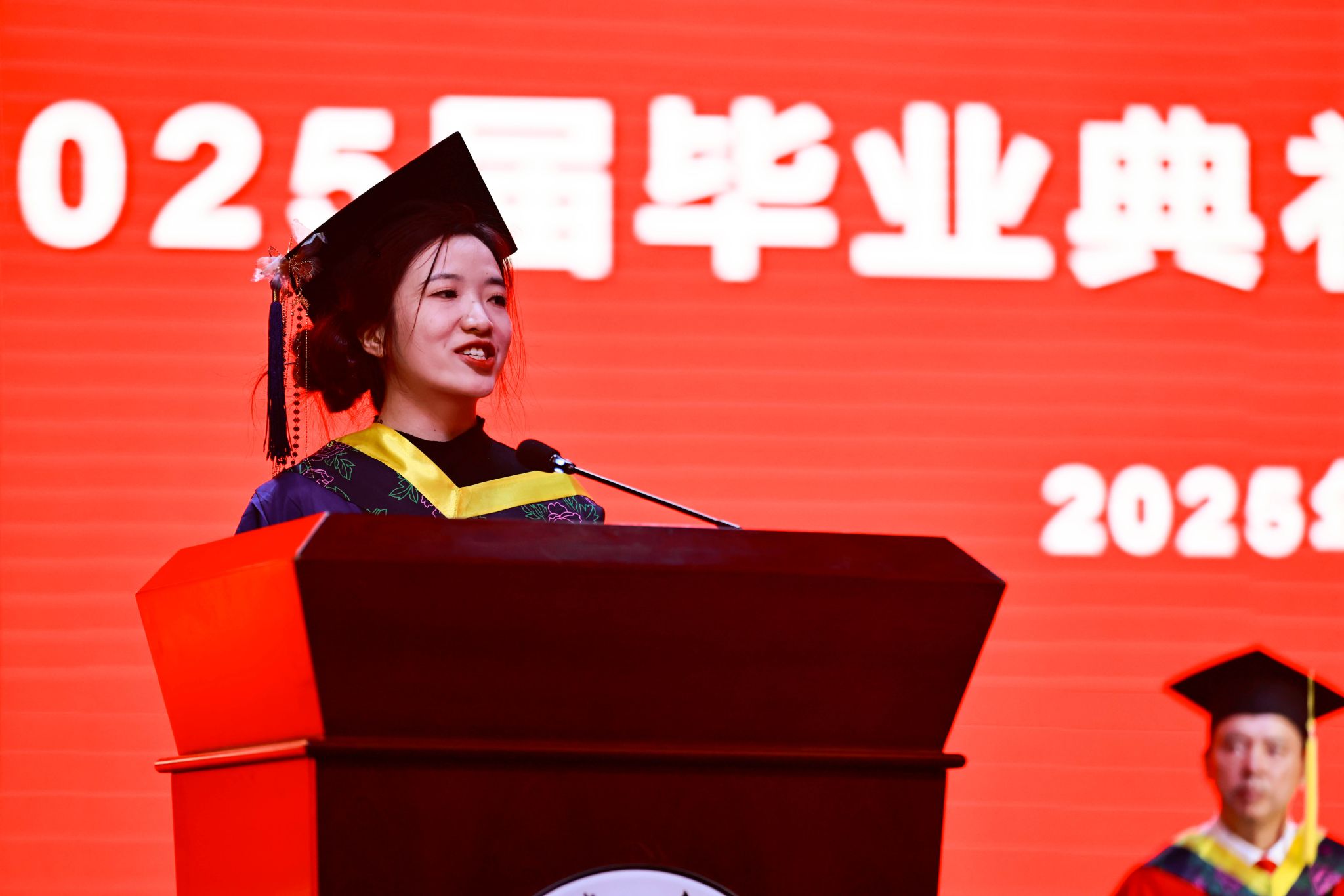 研究生毕业生代表、城乡规划学专业李婷婷在发言中表示,无论未来身处何方,永怀对土地与人民的敬畏与深情,以专业之笔,饱蘸责任与创新之墨,在神州大地的经纬间,精心描绘和谐、活力、永续的人居画卷。