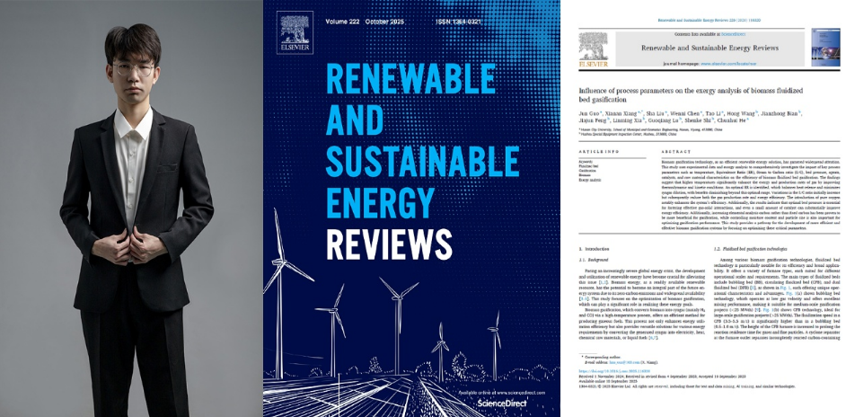 本网讯(通讯员 段姣姣)生物质气化是实现能源结构绿色转型、助力“双碳”目标的关键技术。近日,我校市政与测绘工程学院本科生郭俊在该领域取得重要研究进展,为高效生物质能源系统的开发提供了关键的理论指导。该研究成果以《Influence of process parameters on the exergy analysis of biomass fluidized bed gasification》为题,发表于中科院SCI一区顶级期刊《Renewable and Sustainable Energy Reviews》。