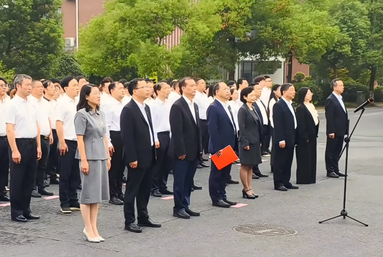 晨光中的南门广场,气氛庄严而肃穆。国旗护卫队迈着整齐有力的步伐,护送着五星红旗走向升旗台。伴随着雄壮的《义勇军进行曲》,鲜艳的五星红旗冉冉升起,迎风飘扬。全体师生肃立行注目礼,齐唱国歌,歌声响彻广场上空。