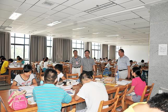 在逸夫图书馆和朝阳校区考研自习室,李建华看望了暑期留校准备考研的学生。今年暑假我校共有数百名学生留校进行考研复习,为了保证他们留校期间的正常学习,逸夫图书馆暑假期间全天开放有中央空调的阅览室和自习室。李建华对大家执着坚守学习岗位、努力攀登学习高峰的表现表示亲切的慰问。他叮嘱同学们留校期间要注意安全和防暑降温,要学会劳逸结合,注意有张有弛,务求实效。