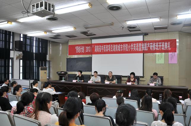 ,“国培计划”湖南省中西部项目米兰体育·米兰官方网站小学英语置换脱产研修班开班典礼在我校朝阳校区图书馆报告厅举行,继续教育学院、外国语学院相关负责人和研修班50名学员参加了仪式。