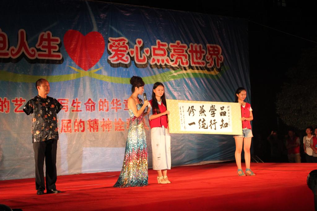 本网讯 拼搏启迪人生,爱心点亮世界。应我校之邀,享誉全国的北京“心灵之声”残疾人艺术团于10月9日晚走进我校,为我校师生带来一场大型励志文艺演出。正厅级督导范志超、学校团委等部门以及二级学院近1000名师生集在校本部城院餐饮中心东侧广场,一起观看了本次演出。