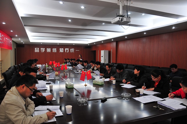 ,学校财经工作领导小组会议在办公楼三楼会议室举行。校长李建华、副校长严曙光、纪委书记杨斌以及财经工作领导小组成员出席会议。会议就我校2013年预算执行情况和2014年财务预算编制进行了研究。