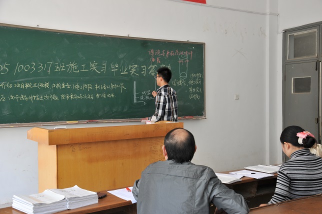 (本网讯)“现场放线的步骤有哪些?”“在施工过程中,中等直径桩的桩径是多少?”17场“特殊”的答辩会在朝阳校区二教上演。土木工程学院800余名2014届毕业生接受了50位导师近乎“苛刻”的提问。对完成校外实习的毕业生进行集中答辩是土木工程学院今年在实习教学管理工作中的一项创新举措,也是该院加强学风建设出的实招。
