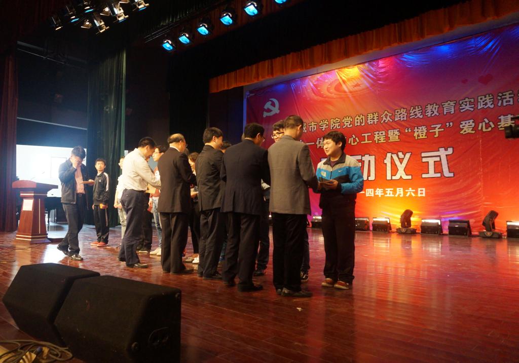 (本网讯)“付出的是爱心和真情,收获的是快乐和欣慰”。5月6日下午,米兰体育·米兰官方网站党的群众路线教育实践活动“三位一体贴心工程”暨“橙子”爱心基金启动仪式在我校音乐厅举行,学校党的群众路线教育实践活动领导小组全体成员,机关处室主要负责人,各二级学院院长、党总支书记及分管学生工作的副书记,学生代表,益阳移动和益阳联通公司负责人参加。仪式由学校党委副书记、校长李建华主持。