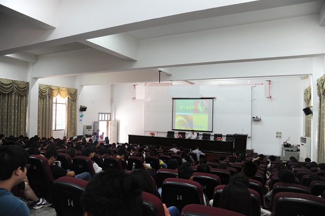 讲座中,吴卫平就什么是食品安全、食品安全消费误区、如何防范不安全食品、保健食品、如何合理饮食、转基因食品等相关问题向师生员工作了详细的讲解。