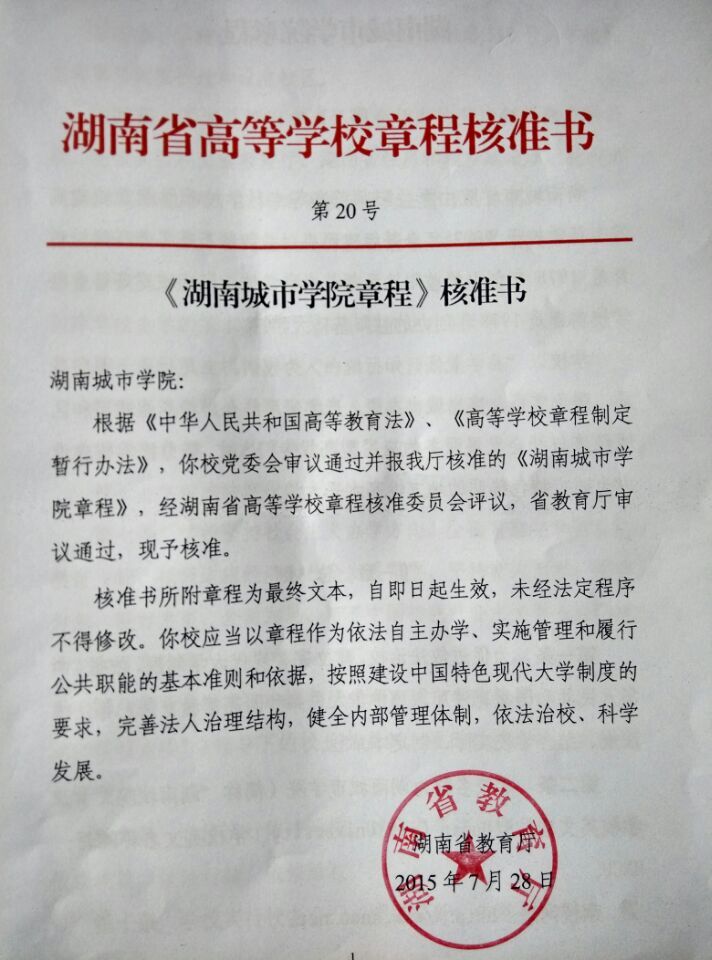 (本网讯)经湖南省高等学校章程核准委员会评议, 7月 28日 ,湖南省教育厅审议通过了《米兰体育·米兰官方网站章程》,章程于核准之日起正式生效。