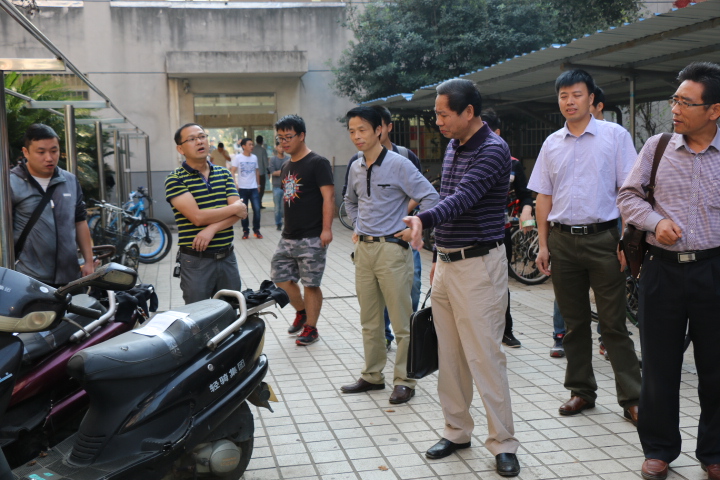 在对高层学生公寓摩托车排查过程中,丁亮中对门卫贩卖熟食现象进行了严厉的批评,要求相关部门督促门卫进行整改,还学生一个整洁的公寓环境。