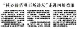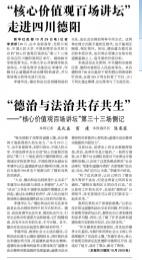 (本网讯) 1029,我校党委书记李建华教授应“核心价值观百场讲坛”邀请,为四川德阳市旌阳区700余名干部群众作了主题为《让道德滋养法治精神》的演讲。演讲引起了包括中央电视台、人民日报、新华社、光明日报、经济日报、中国青年报等多家央媒在内的全国主流新闻媒体关注,同时有280万网友通过网络直播观看了节目,20余万网友通过微博、论坛等参与了交流互动。