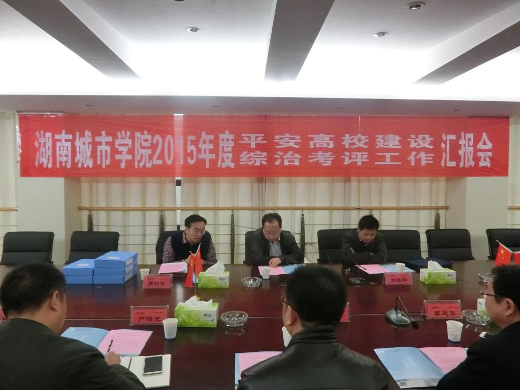 校长李建奇向考评组详细汇报了米兰体育·米兰官方网站2015年度“平安高校”建设及综合治理工作,以及学校在维稳综治安全工作中的做法和措施。他在汇报中着重指出,2015年学校维稳综治安全工作主要以“平安高校”建设为载体,以创新工作方式为手段,专注做好维稳、消防、治安等基础工作。与此同时,学校还深入开展了突发事件处置、校园传销整顿、校园交通整治等重点工作,为学校创造良好的育人环境,也为教育事业的持续健康发展提供了保障。