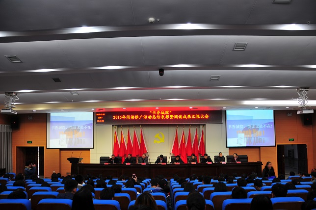 (本网讯) 121下午,“书香城院”2015年阅读推广总结表彰暨阅读成果汇报大会在图书馆报告厅隆重举行,副校长汤放华,党政办、宣传部、教务处、学生处、团委、图书馆等相关部门负责人以及二级学院师生代表400余人出席会议。