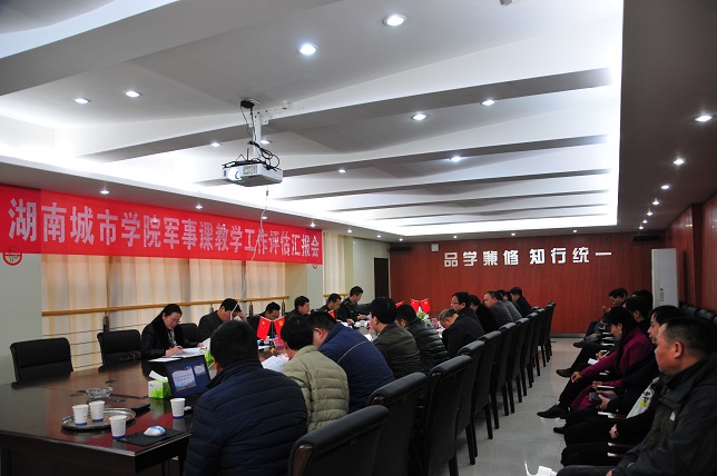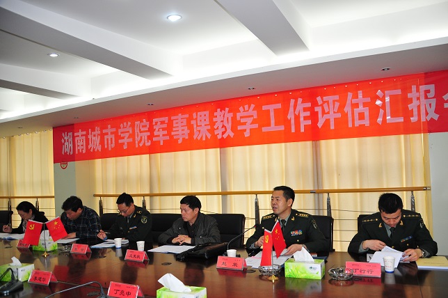 武装部部长贺正宜从课程管理、课程建设、课程实施、教学成果和教学保障等方面对我校近年来的军事课教学工作作了详细汇报。