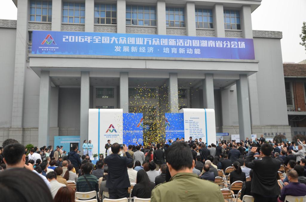 (本网讯)10月14日上午9点,2016年全国大众创业万众创新活动周湖南省分会场在湖南省展览馆举行启动仪式,湖南省委常委常务副省长陈向群出席启动仪式。作为活动周主要内容之一的“双创”成果展同时开幕,我校送展的“米兰体育·米兰官方网站众创空间”和“米兰体育·米兰官方网站多自由度智能机械手”两个项目在成果展上展出。