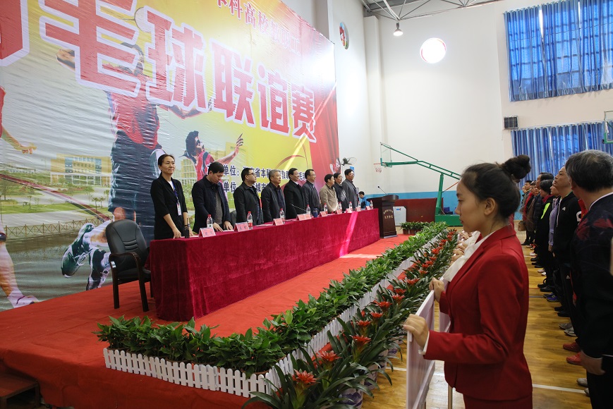 开幕式由省本科高校教职工羽毛球协会会长何学飞主持,我校校长李建奇、省教育工会副主席王常华分别致辞,裁判员代表、运动员代表上台宣誓,省教育工会主席高新明宣布比赛开始。