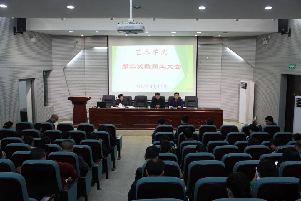 (本网讯)4月11日下午2点,艺术学院教职工政治学习会议在美艺楼107室召开,学校党委书记罗成翼教授出席会议。会议由艺术学院党委书记周勇教授主持。