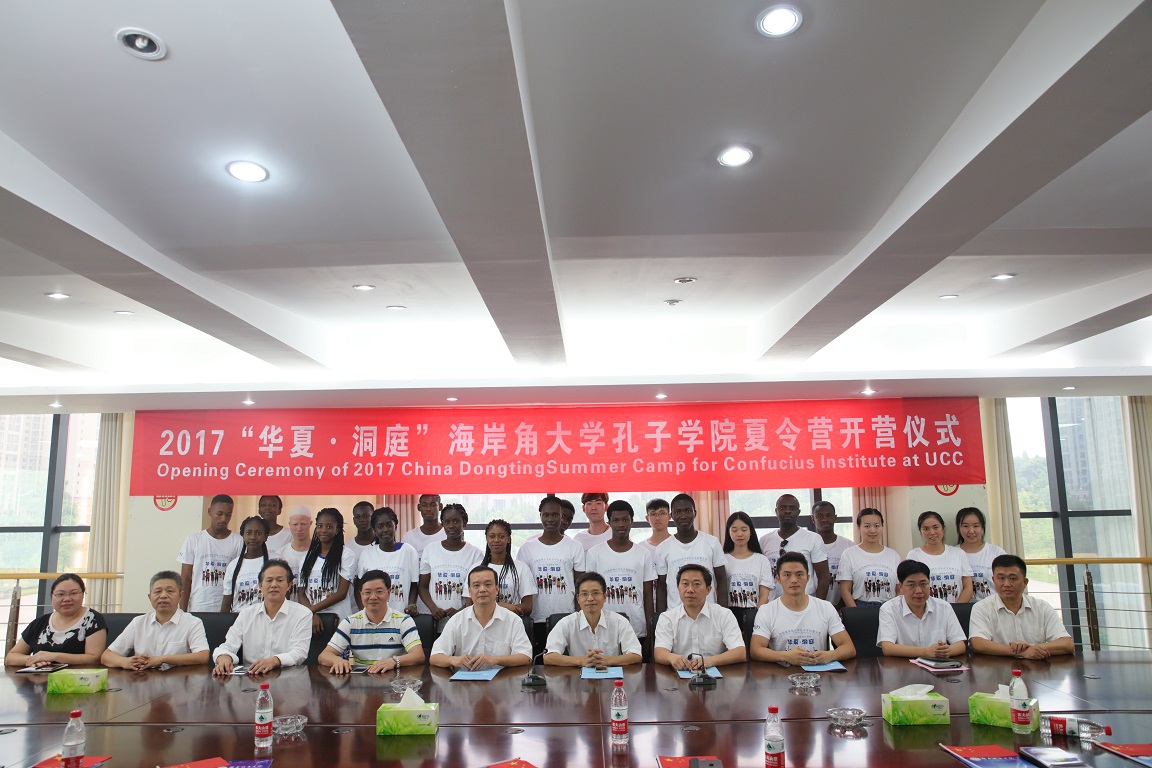 (本网讯)8月5日下午,由国家汉办/孔子学院总部主办,我校承办的2017“华夏·洞庭”海岸角大学孔子学院夏令营在我校开营。副校长刘辉煌、雷存喜,益阳市外事侨务旅游局副局长张金龙,学校教务处、保卫处、国际合作与交流处、人文学院等相关负责人,夏令营领队老师胡亮才以及来自加纳海岸角大学孔子学院的14名营员参加了开营仪式。
