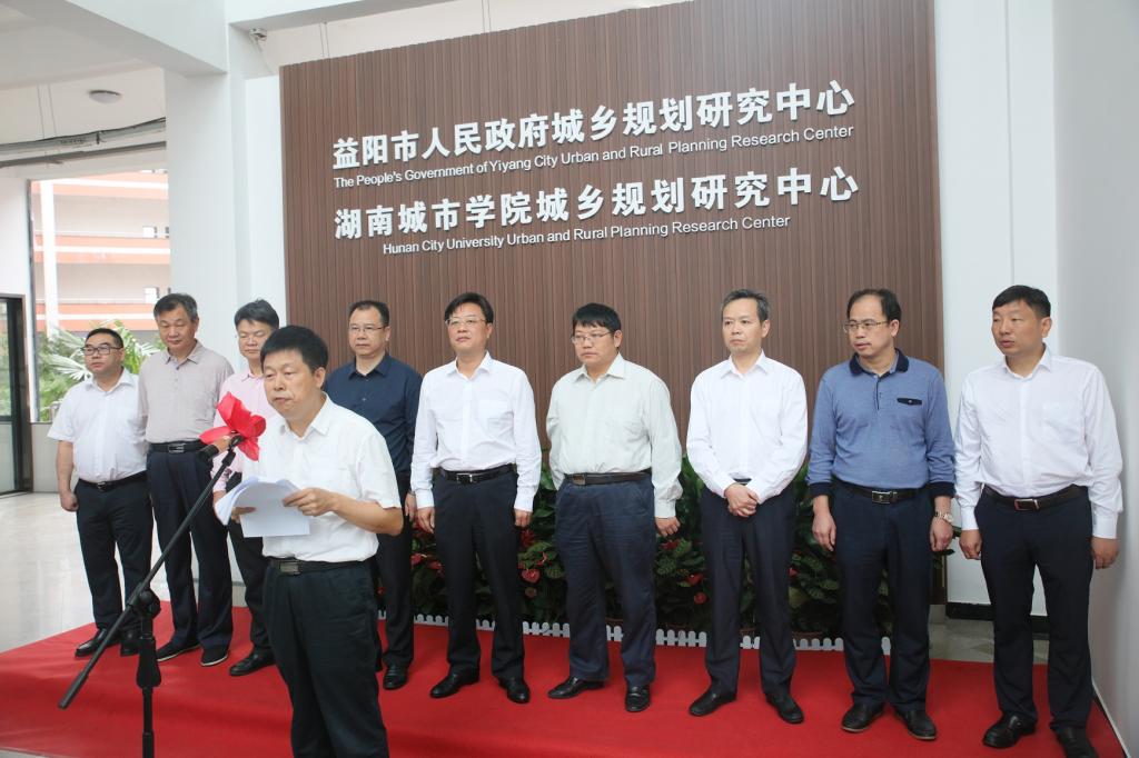 (本网讯)9月28日上午,我校城乡规划研究中心和益阳市人民政府城乡规划研究中心揭牌仪式在我校创新创业大楼举行。益阳市委副书记、市长张值恒,市人民政府副市长谭建华,我校党委书记罗成翼,校长李建奇,党委副书记汤放华,副校长夏宏宇、郑卫民、刘辉煌、何振、谭献良等出席仪式。仪式由谭建华主持。