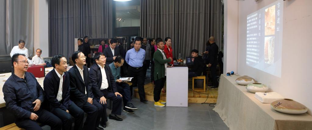 李友志一行在艺术学院听取非物质文化遗产传承人对羊舞岭窑的介绍