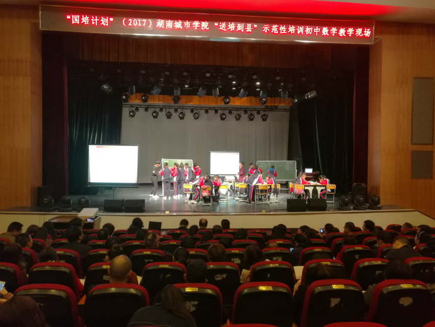 (本网讯)11月11日至12日,学校继续教育学院圆满完成“国培计划”(2017)送培到县示范性培训工作任务。来自益阳市资阳区和赫山区的小学音乐、初中数学和英语教师共700人参加了培训。