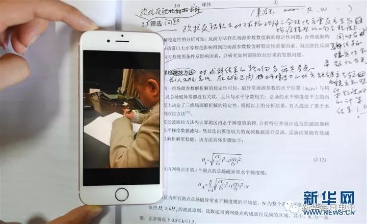 5月26日,周文月向记者展示2016年5月20日黄大年为她修改论文时的照片和当时修改的论文页面。新华社记者 王昊飞 摄