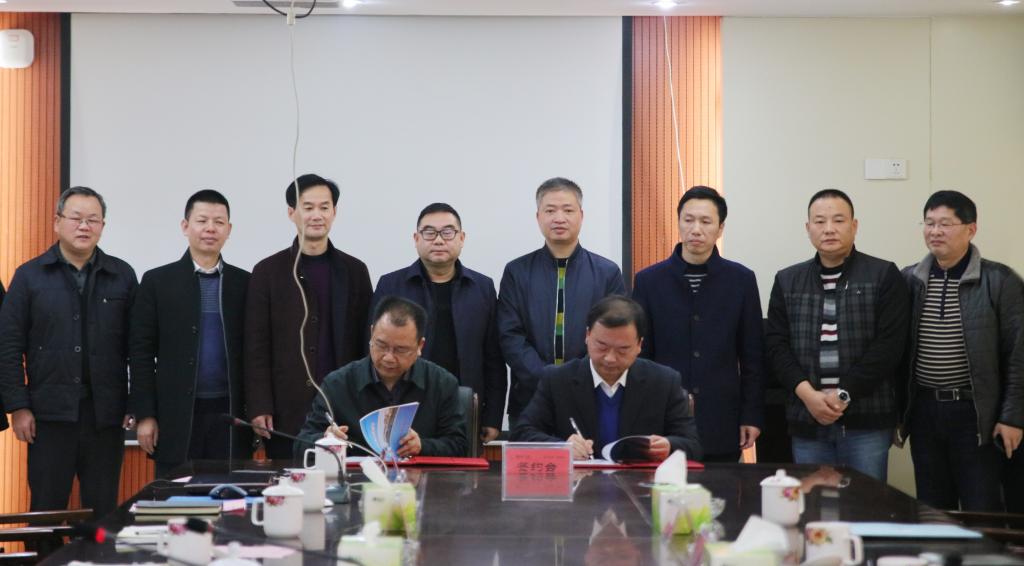 (本网讯)12月5日上午,我校与益阳市交通发展投资有限责任公司(交发投)产学研战略合作协议签订仪式在一办公楼一会议室举行。校长李建奇、副校长郑卫民,益阳交发投总经理周卫星,副总经理徐炳炎、王琨,学校党政办、产业处、校办企业相关负责人出席签约仪式。