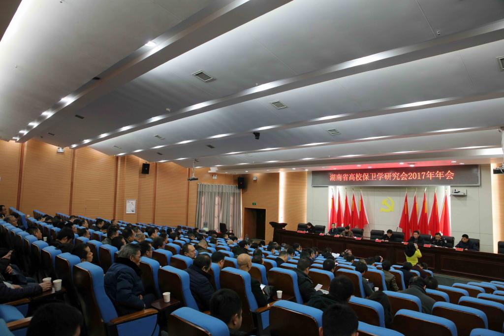 (本网讯)1月12日,湖南省高校保卫学研究会2017年年会在我校图书馆报告厅隆重举行。校长李建奇、副校长夏宏宇,湖南省高校保卫学研究会理事长、湖南女子学院副校长周松涛,湖南省国家安全厅涉外安全保卫总队副总队长何维良,省公安厅文保支队支队长刘全利,省教育厅维稳办主任朱日红,我校法制副校长、益阳市公安局常务副局长李克良等出席会议。全省80余所高校共160余人参加了会议。会议由湖南省高校保卫学研究会秘书长、湖南女子学院保卫处处长龙荣华主持。