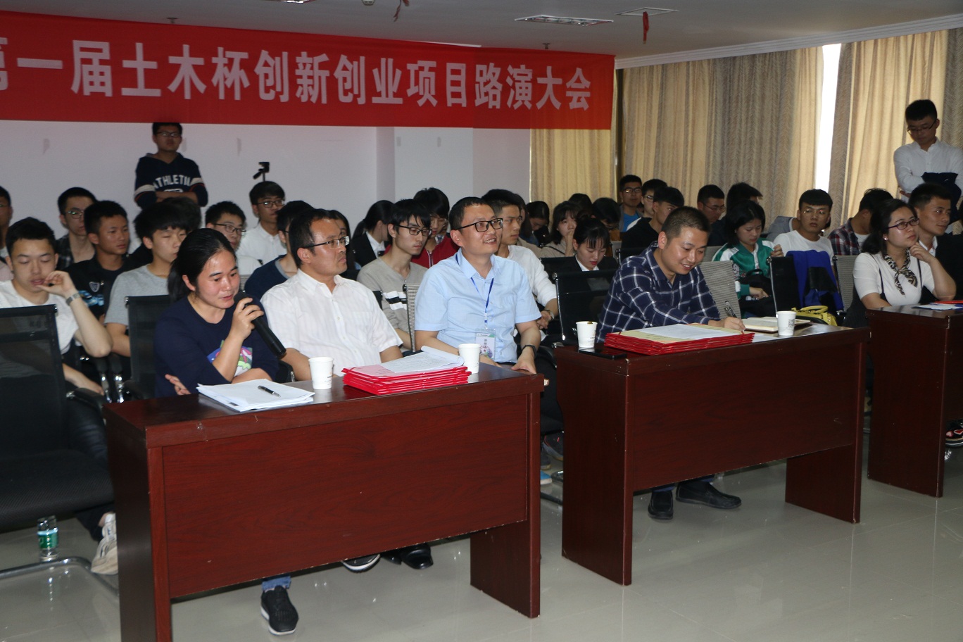 益阳市就业服务管理局副局长陈希,我校土木工程学院党委副书记王皓、应用与创新创业学院创新创业教研室主任郭自嘉、学生工作处创业导师王宗新、土木工程学院分团委书记肖寒和创新创业导师刘益虹出席路演大会并担任评委,对项目进行评审。9个大学生主创团队及土木工程学院16级、17级各班科创委员到场参加。