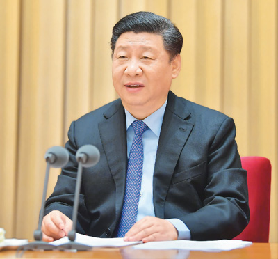 图为习近平出席会议并发表重要讲话。