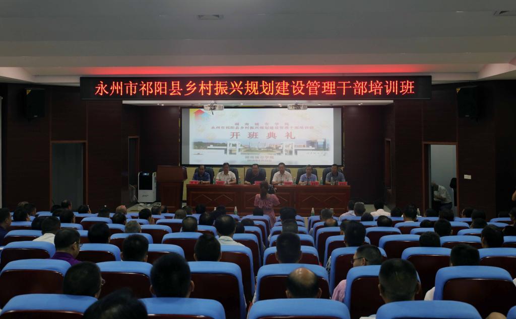 (本网讯)6月22日,祁阳县乡村振兴规划建设管理干部培训班开班仪式在我校建规楼报告厅举行,祁阳县县委书记周新辉,县委常委、组织部长郑国荣,县委常委、县委办主任唐明生,校长李建奇,副校长夏宏宇、何振以及教育教育学院相关人员出席开班仪式,祁阳县143名干部参加培训。