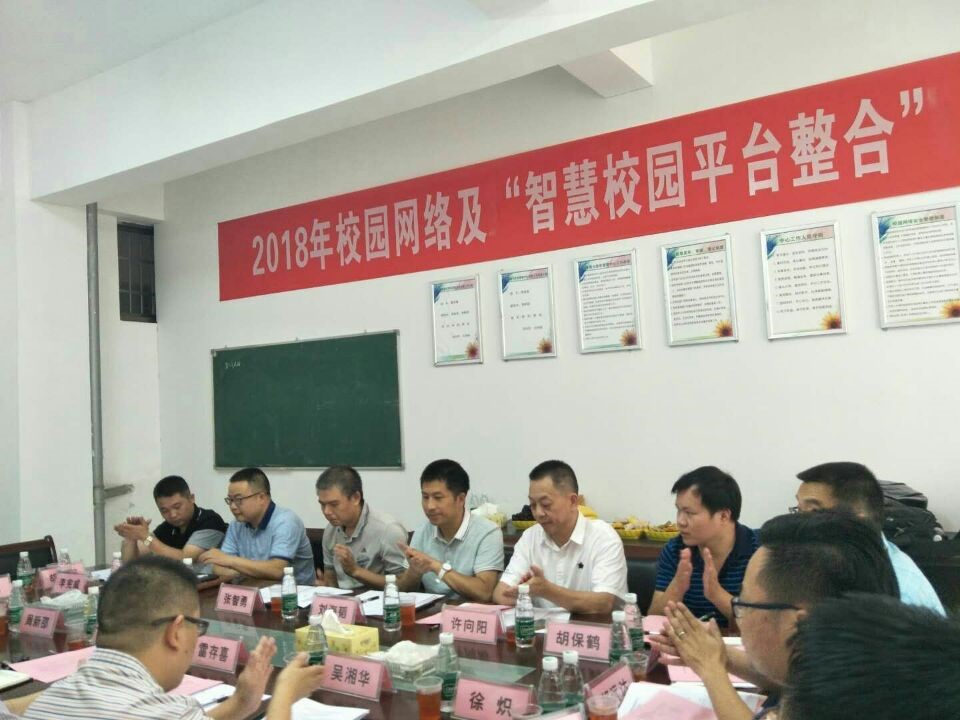 (本网讯)7月17日-18日,我校召开了校园网络及“智慧校园平台整合”技术研讨会。副校长雷存喜,中南大学信息与网络中心副主任(湖南省教育网络协会副理事长兼秘书长)刘海韬、湖南师范大学信息化办公室副主任(湖南省教育网络协会副理事长)张智勇、长沙学院网络与现代教育技术中心主任许向阳3位省内专家,正方软件股份有限公司、360企业安全集团等区域主管与技术人员,网络与信息管理中心、图书馆、教务处相关人员参加了会议。