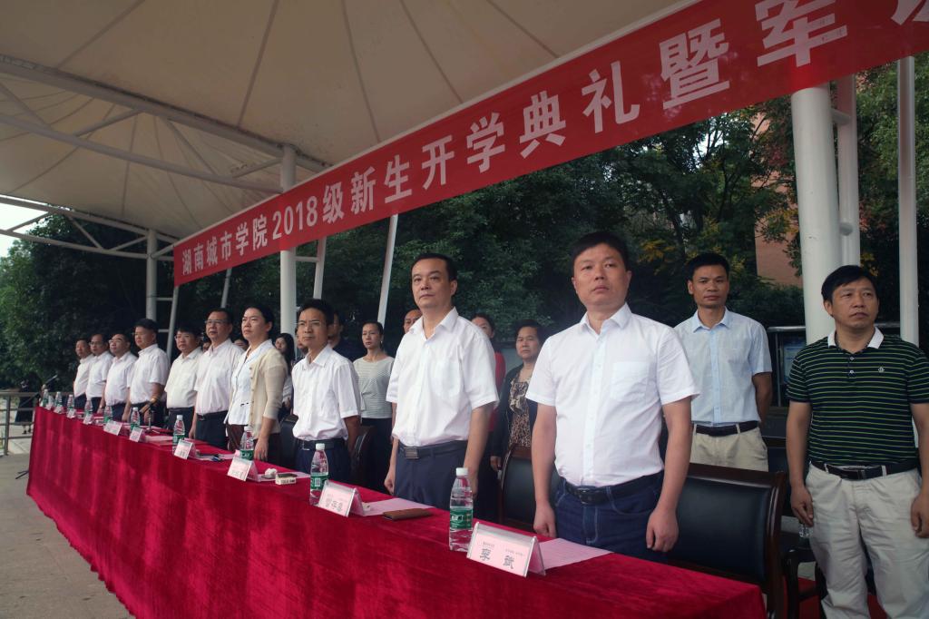 (本网讯)2018年9月13日上午7:40,2018级新生开学典礼暨军训动员大会在学校田径场隆重举行。在家的校领导,相关处室负责人,各二级学院院长、党委(党总支)书记和副书记、新生辅导员、全体教官及2018级5000多名新生参加了典礼。典礼由党委书记罗成翼主持。