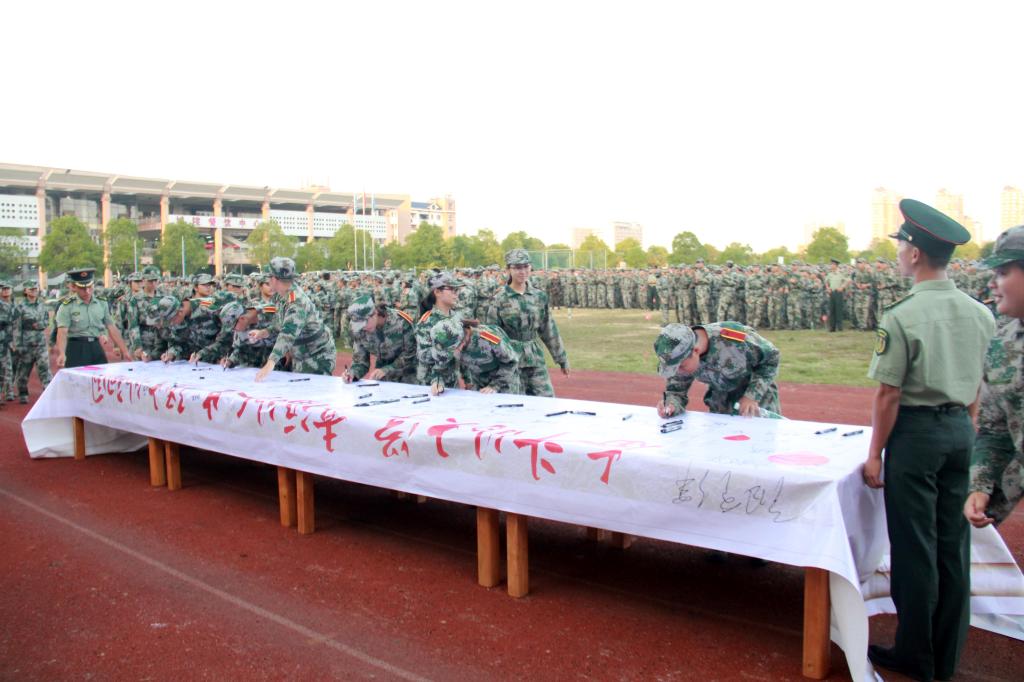 新生在“奋斗的大学∙幸福的人生∙强大的祖国”条幅上签名