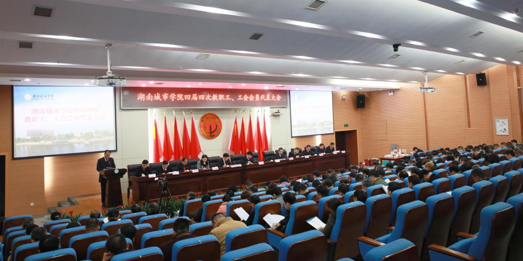 (本网讯)2019年3月23日上午8点30分,我校第四届四次教职工、工会会员代表大会在图书馆报告厅隆重召开。136名正式代表、特邀代表和列席代表出席会议。校领导罗成翼、李建奇、汤放华、夏宏宇、姚春梅、郑卫民、何振、雷存喜、谭献良、罗新湘、李斌、袁志成在主席台就座。大会由党委副书记汤放华主持。