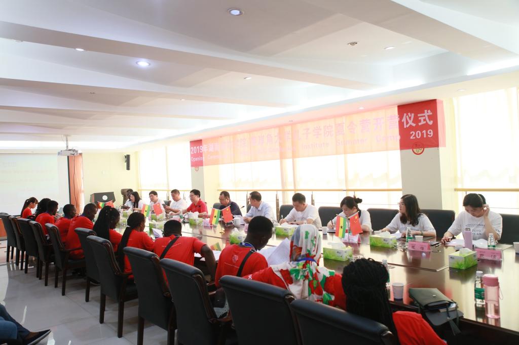 (本网讯)2019年8月2日下午,米兰体育·米兰官方网站/加纳海岸角大学孔子学院“华夏·洞庭”——中国文化夏令营开营仪式在办公楼一会议室举行。校长李建奇出席开营仪式并发表讲话,参加开营仪式的有来自加纳海岸角大学孔子学院的全体营员,出席开营仪式的还有学校副校长雷存喜,加纳海岸角大学孔子学院中方院长、学校国际交流处、保卫处、基建和后勤管理处、人文学院等各单位的负责人,老师以及学生志愿者代表。开营仪式由雷存喜主持。