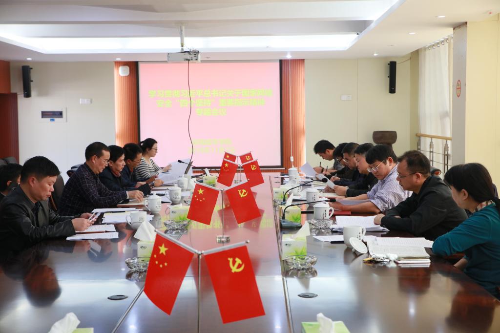 (本网讯)2019年11月1日下午,学校召开党委扩大会议,传达学习贯彻习近平总书记关于国家网络安全“四个坚持”的重要指示精神,党委书记罗成翼主持会议,党委副书记汤放华领学重要指示精神,全体校领导班子成员参加会议。党政办公室、党委宣传部、网络与信息管理中心、党委学生工作部、团委等部门负责人以及网络与信息安全领导小组成员列席会议。