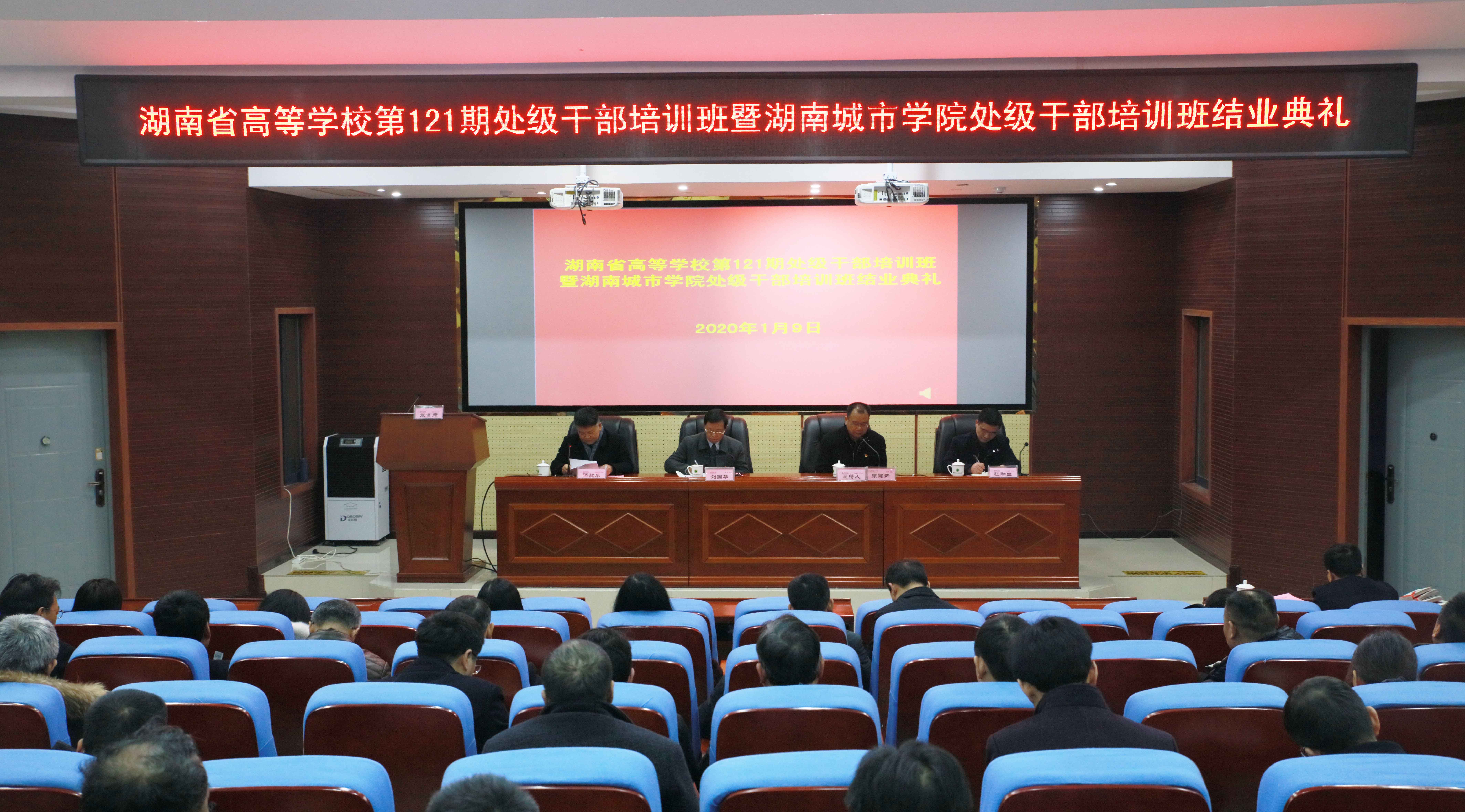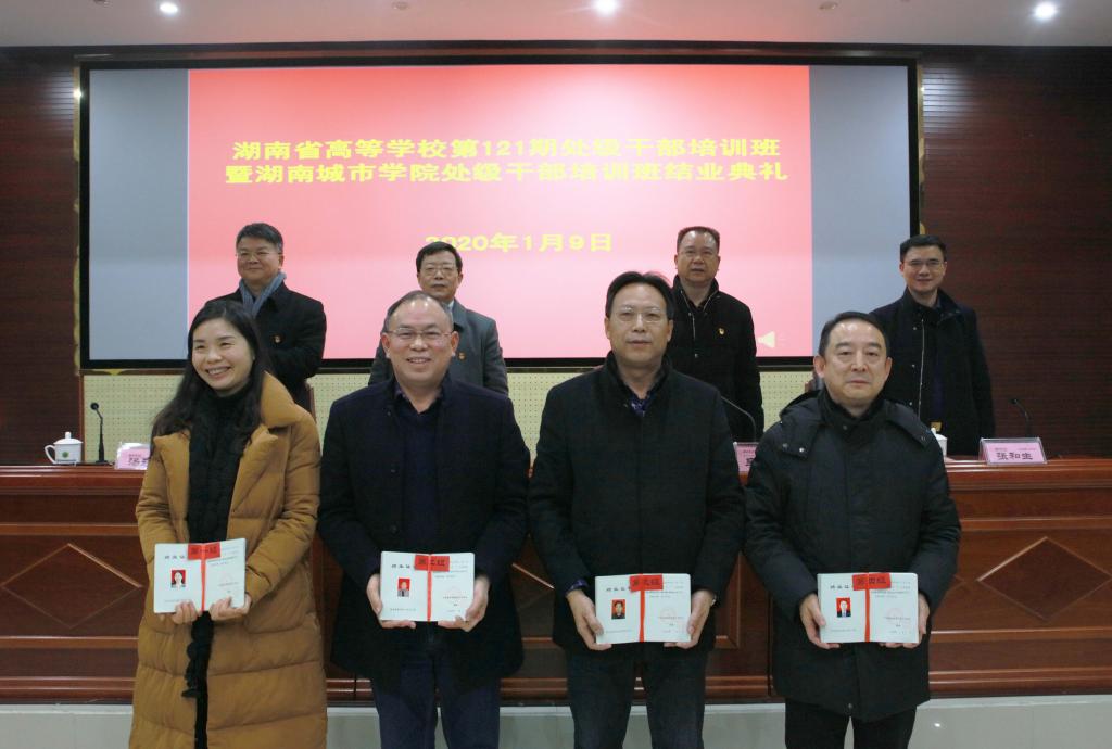 (本网讯)2019年1月9日,湖南省高等学校第121期处级干部培训班暨米兰体育·米兰官方网站处级干部培训班结业典礼在我校图书馆报告厅举行。湖南省高校干部培训中心主任、书记,省委教育工委党校常务副校长刘国华,省高校干部培训中心副主任张和生,党委副书记汤放华,党委委员、组织部长袁志成出席。结业典礼由党委副书记、校长李建奇主持。