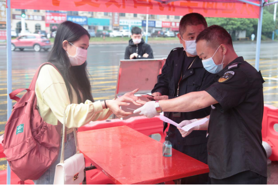 “近期有没有发热现象?”“喉咙痛不痛?”“有干咳吗?”经核验确定无发热、咽痛、干咳等症状后,学生们更换好口罩、用免洗手消毒凝胶消毒双手,再依次通过双视红外人体体温快速筛查系统,确保无异常后入校。进入学生公寓前,学生也需再次测量体温,出示校园卡或学生证,上交健康证明卡,由工作人员核验并登记,方可入内。
