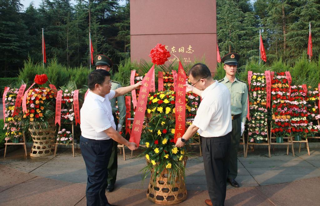 全体人员来到韶山后,首先参观了毛主席纪念馆。在讲解员的引导和解说下,全体党员干部全面了解了毛泽东同志从求学、参加革命到带领全国人民建立新中国伟大而光辉的一生。一件件史实、一个个故事、一张张图片……让大家重温了那段交织着血与火的历史,感受了“为有牺牲多壮志,敢教日月换新天”的韶山精神,心灵一次次受到洗礼。参观结束后,全体人员来到毛泽东铜像广场,集体向毛泽东同志铜像敬献花篮,庄严地向毛泽东同志铜像鞠躬,深切缅怀一代伟人。在党委书记罗成翼领誓下,全体党员干部面对党旗,一起重温了入党誓词。