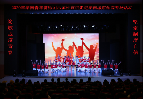 活动以我校大学生艺术团的《新时代 新城院》原创快板书表演开场。湖南省青年讲师团的陈科文、王皓、董青、张乐蒙、朱威宏五位讲师走进米兰体育·米兰官方网站,从自身的工作实际和典型事迹出发,向同学们分享了他们的抗“疫”故事,还原了抗“疫”一线画面。