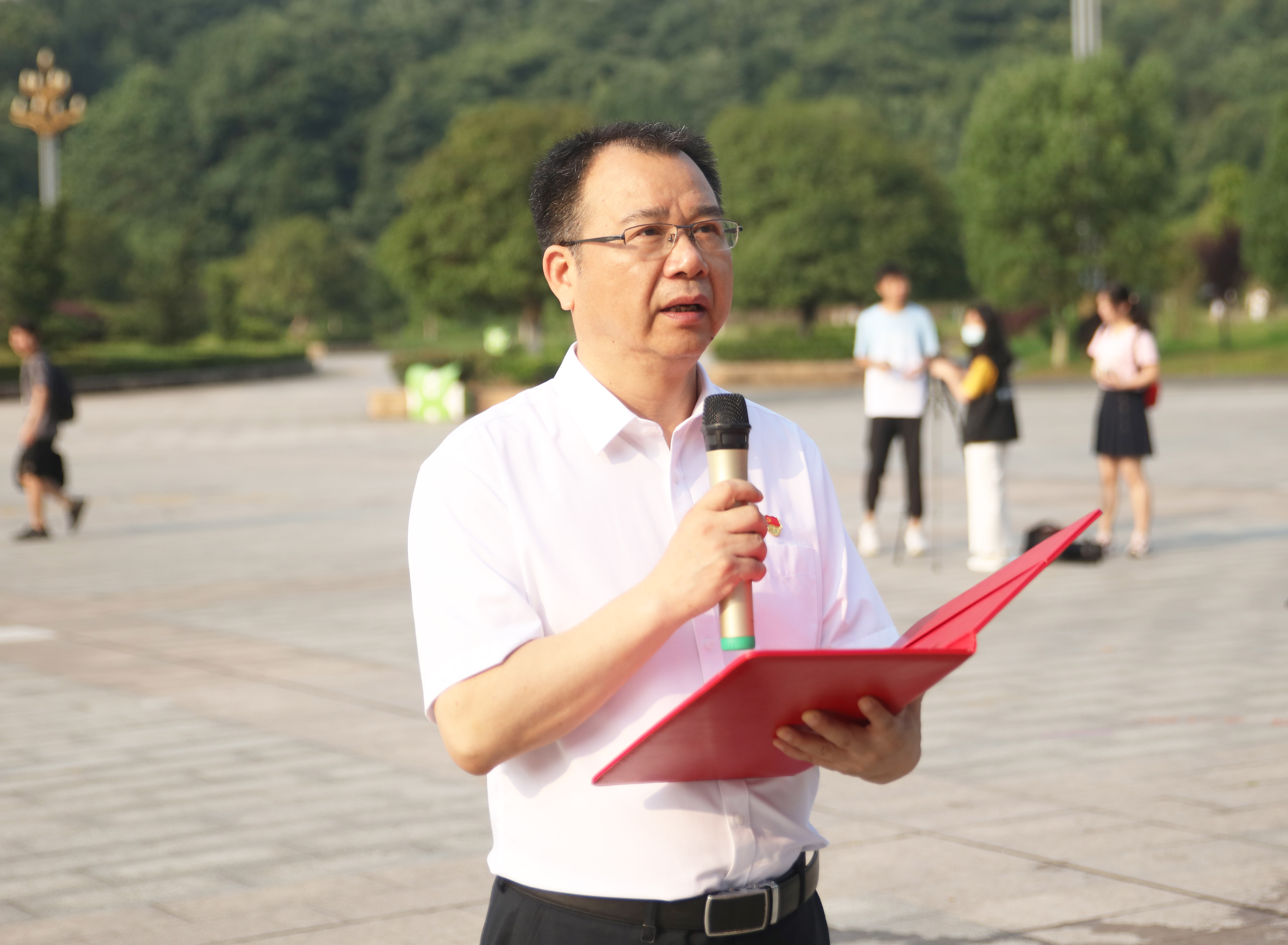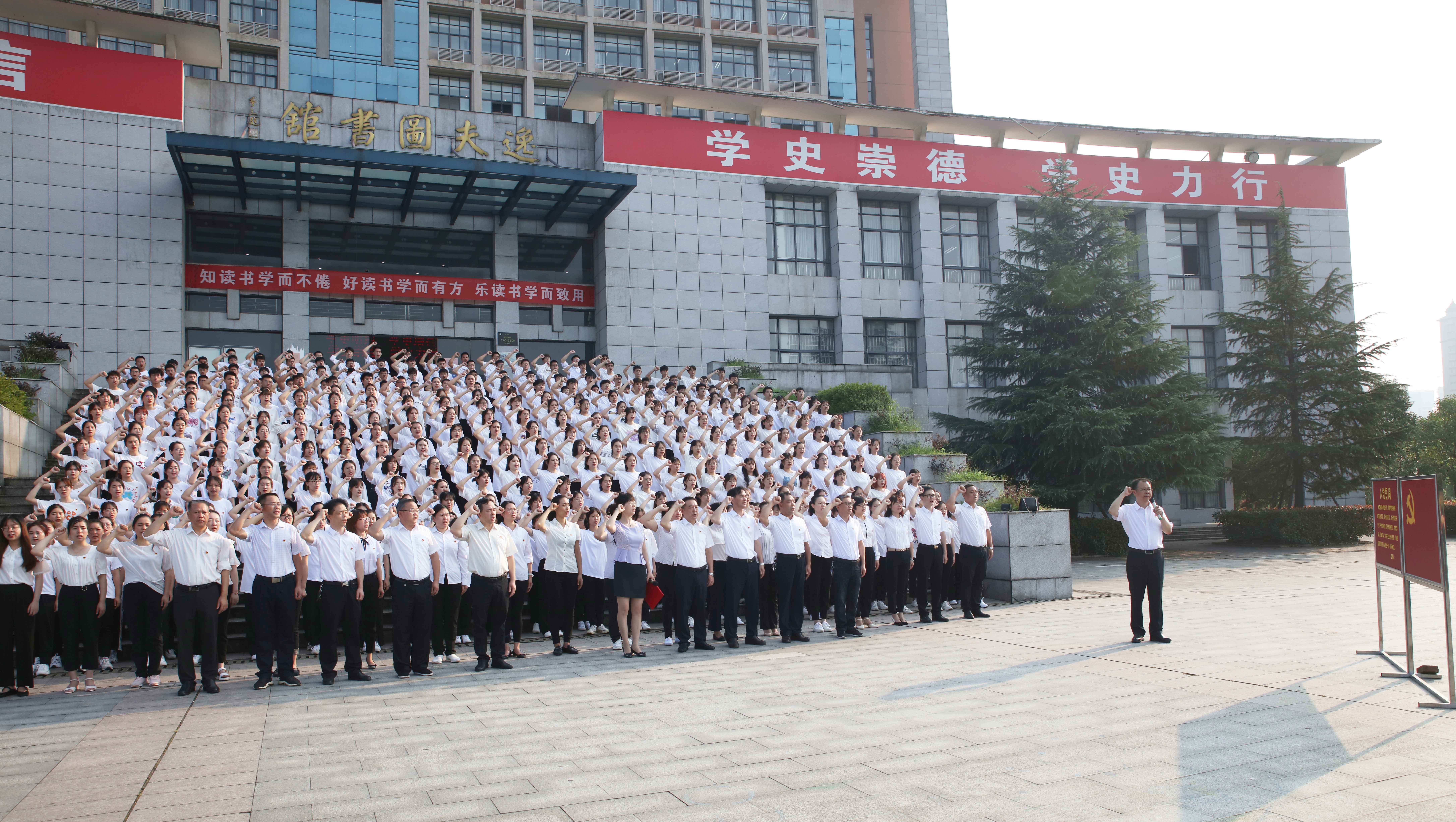 本网讯(通讯员 刘淑莉)在中国共产党建党100周年到来之际,2021年6月25日早晨7点30分,我校新党员入党宣誓仪式在兴城广场举行。校党委书记李建奇领誓并讲话。358名教师新党员、学生新党员代表参加集体入党宣誓活动。党委委员、组织部部长吕贤军、二级学院党委(党总支)书记、组织员参加活动。入党宣誓仪式由校党委副书记何旭娟主持。