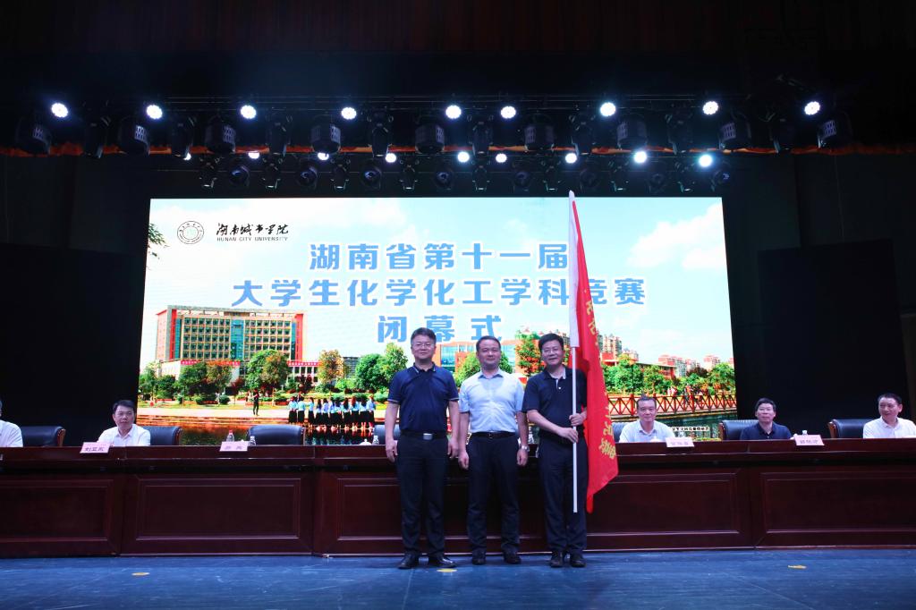 随后,汤放华代表承办单位将竞赛旗转授给了下一届承办单位湖南工程学院。与会领导嘉宾对获奖者进行了颁奖。