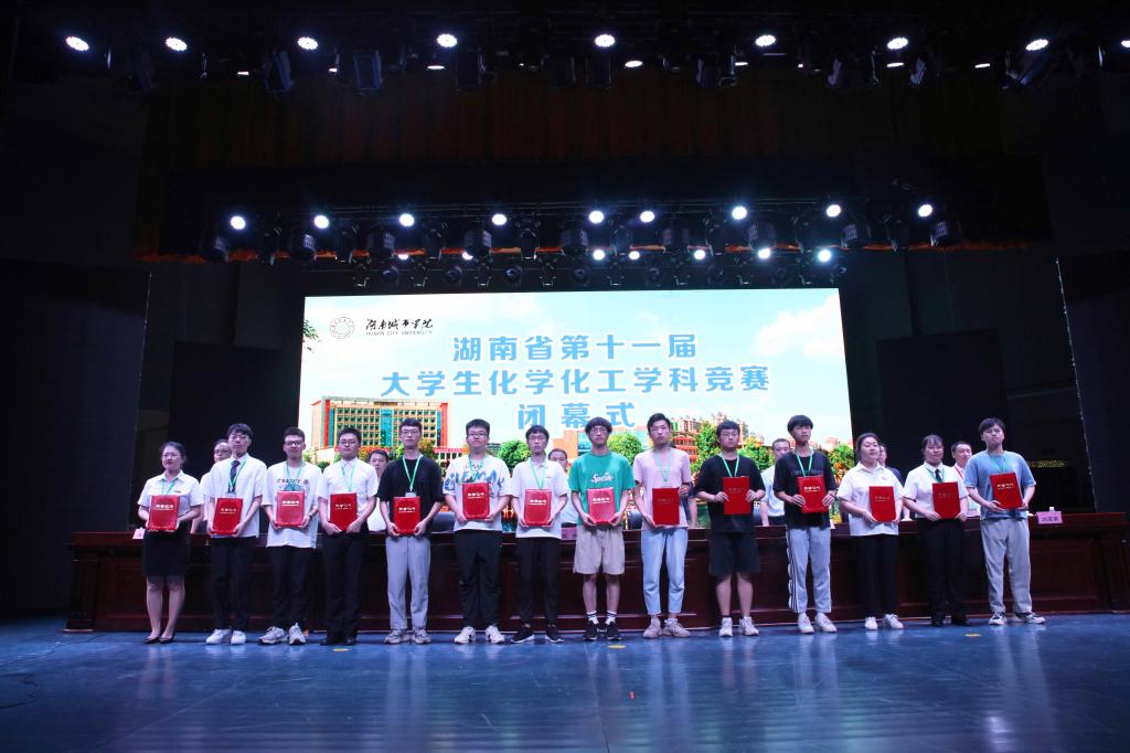 7月16日下午,比赛闭幕式在学校音乐厅举行。省教育厅高教处副处长王荣、我校校长汤放华、湖南工程学院校长易兵、我校副校长雷存喜、省化学化工学会理事长刘卫东、省大学生化学化工学科竞赛委员会主任郭栋才等人出席。