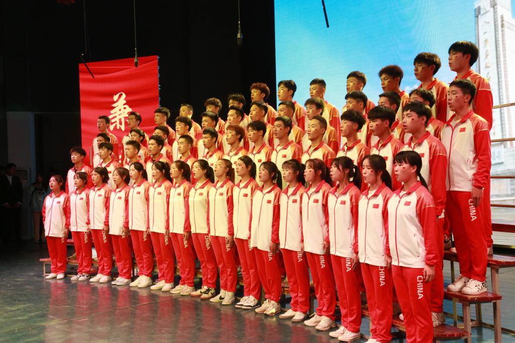 比赛中,13个二级学院学生组成的合唱队倾情献唱,参赛人员着装整齐、激情洋溢,用昂扬奋发的精神风貌表达了爱党爱国、同心奋进的城院情怀。一首首经典传唱的红色歌曲,唱出了他们对中国共产党的无限崇敬与热爱。台上热血沸腾,台下掌声雷动,现场高潮迭起、阵阵欢呼。