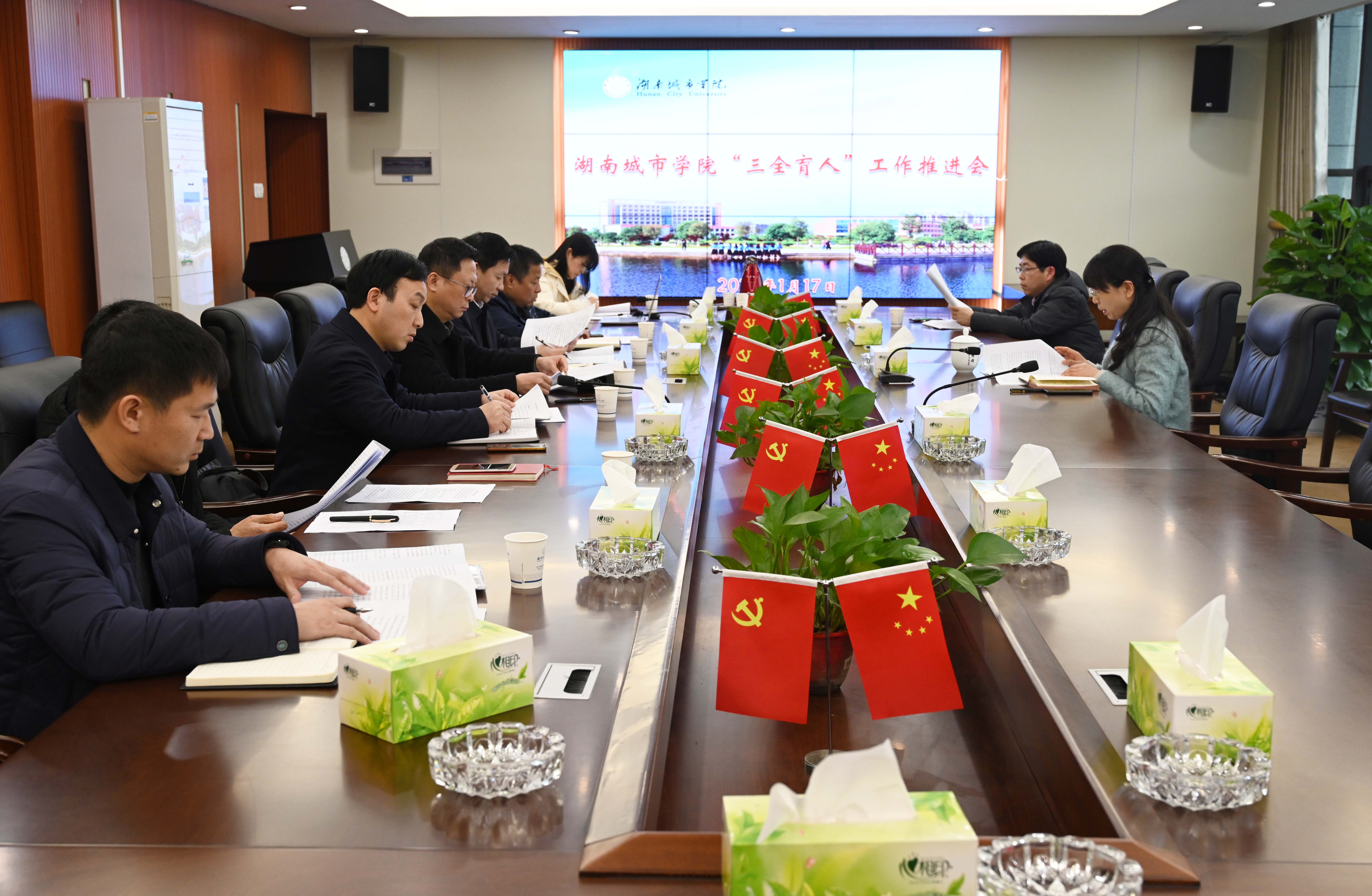 本网讯(通讯员 周文娟)1月17日,学校在办公楼一会议室召开“三全育人”工作推进会。会议由党委副书记何旭娟主持,学校“三全育人”综合改革子项目“十大”育人牵头单位相关负责人参加会议。