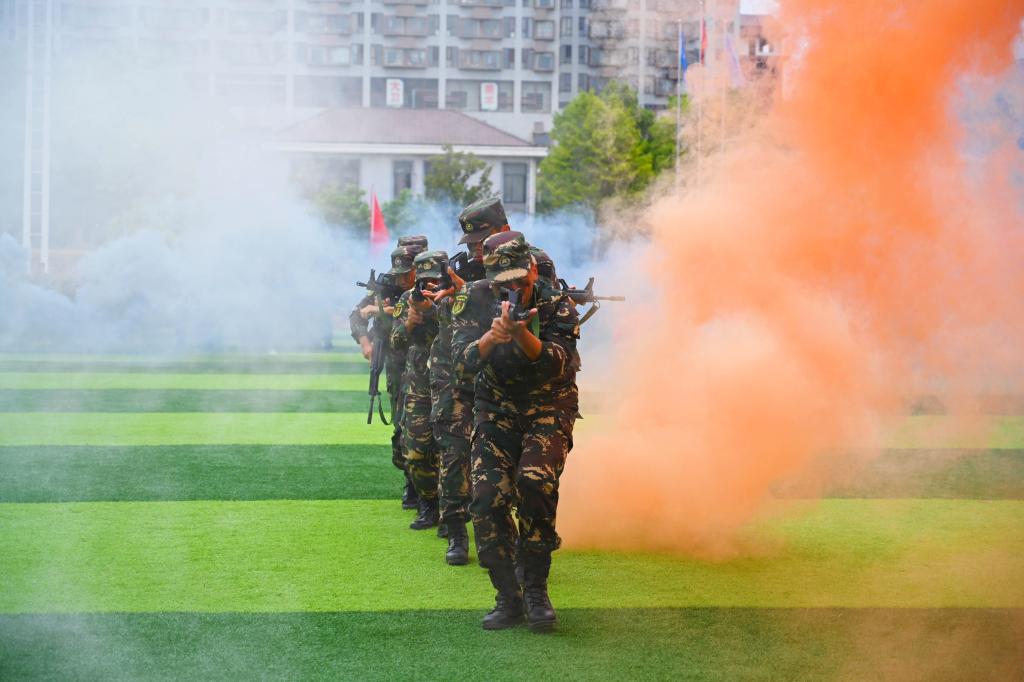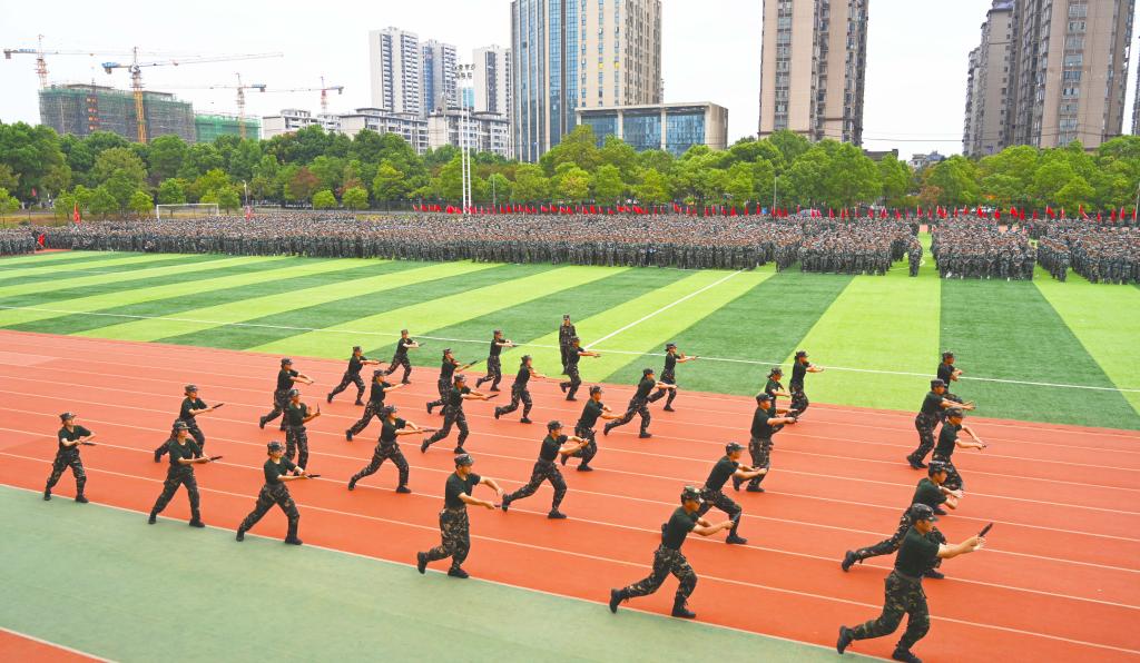 军训成果汇报表演由副校长雷存喜主持。军训教官表演了摔擒格斗、分队战术行动演练、擒敌拳、匕首操、应急棍,各学院新生表演了《团体操》《军体拳》《旗操、手语操》等节目。其后,在教官方队的引领下,各二级学院新生方队喊着嘹亮的口号,迈着铿锵有力的步伐,昂首阔步、意气风发地经过主席台接受检阅,向全校师生展示了2022级新生14天的军训成果和蓬勃朝气。