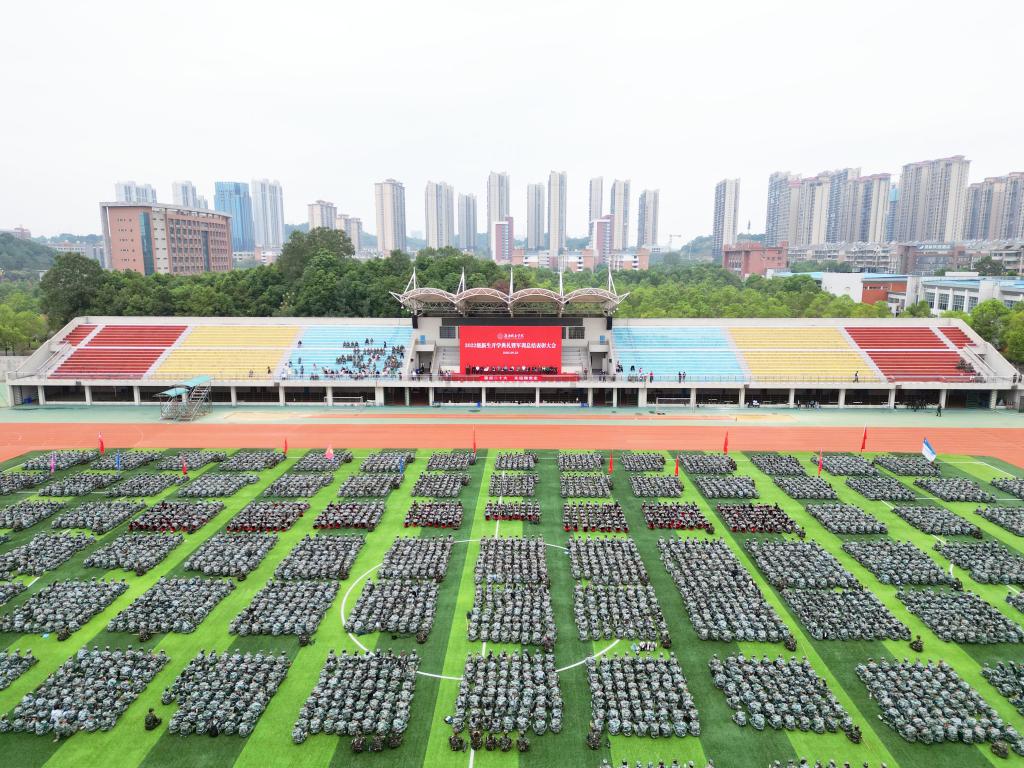 本网讯(文/图文彦波 张蓥 彭钦来 视频/张飞雪 李新会)四季长天同谱瑞,三秋桂子又飘香。9月23日上午,米兰体育·米兰官方网站东田径场内红旗飘扬,口号嘹亮,欢声雷动,2022级本科新生开学典礼暨军训总结表彰大会正隆重举行。党委书记李建奇、校长汤放华等全体校领导出席,机关各部门主要负责人,各二级学院院长、书记、分管学生工作的副书记,2022级新生辅导员、班主任、教师代表以及2022级5913名本科新生参加。大会由李建奇主持。