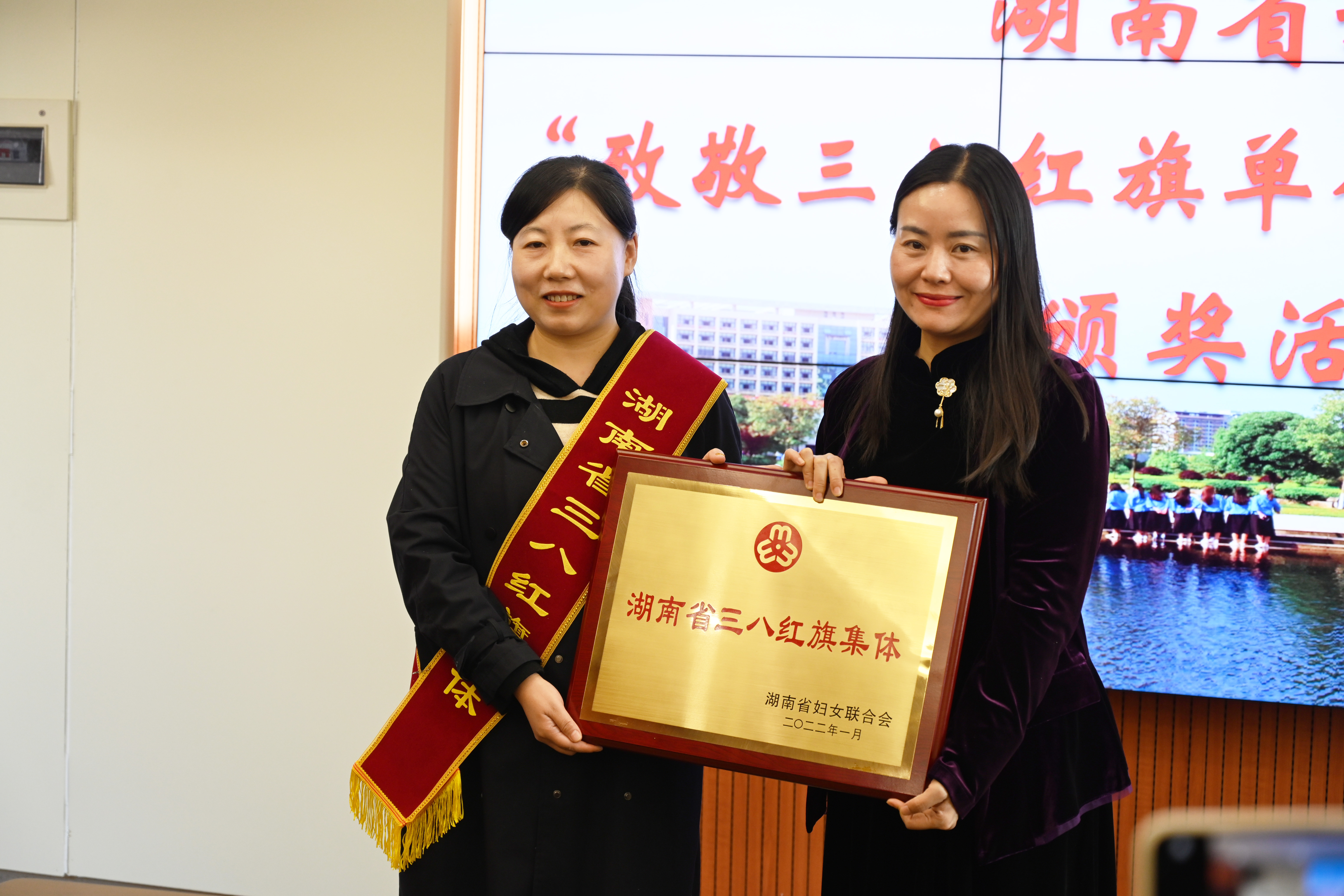 本网讯(记者/文彦波 通讯员/王锋娟)11月2日下午,省妇联副主席周荣一行来到米兰体育·米兰官方网站开展“致敬三八红旗手·送奖到基层”活动,为荣获湖南省“三八红旗集体”荣誉的马克思主义基本原理概论教研室颁奖。学校党委副书记何旭娟,校工会、马克思主义学院等单位相关负责人出席授奖仪式。