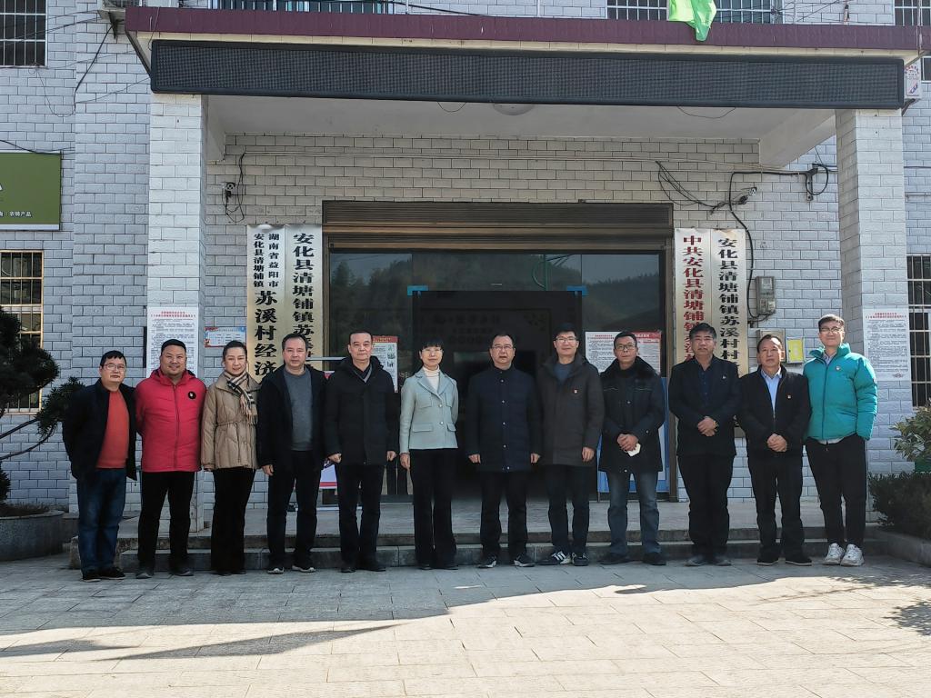 本网讯(供稿:组织部)12月13日至14日,党委书记李建奇,党委副书记何旭娟,副校长何振、副校长雷存喜,党委委员、组织部长吕贤军率相关部门,先后来到我校乡村振兴定点帮扶村——安化县清塘铺镇苏溪村,调研乡村振兴工作,看望慰问驻村干部。清塘铺镇党委书记文武、副镇长陈习桥、村支部书记邹文辉陪同调研。
