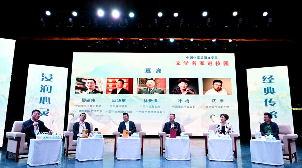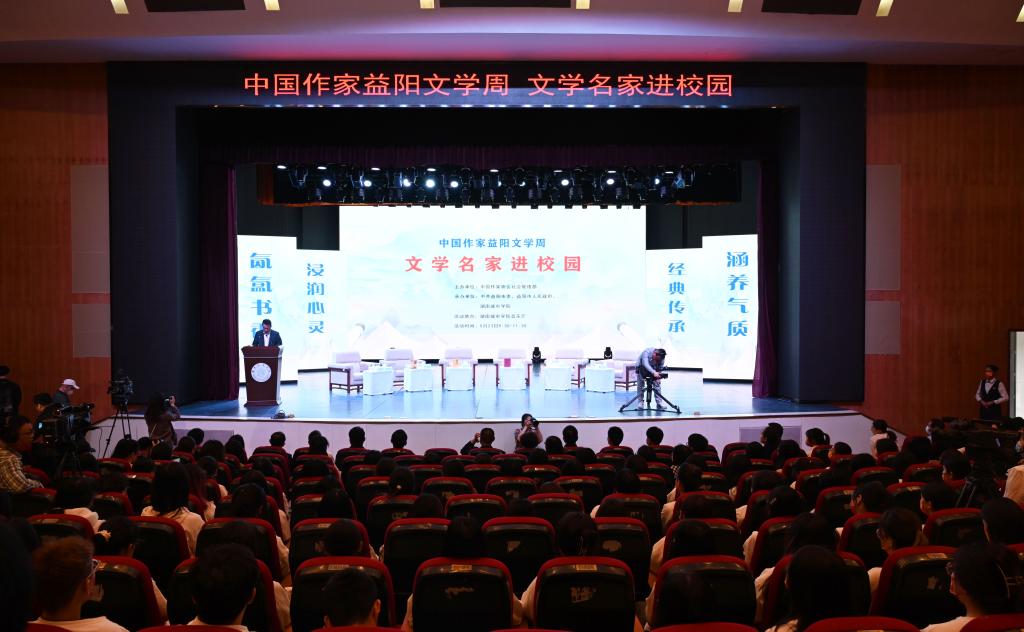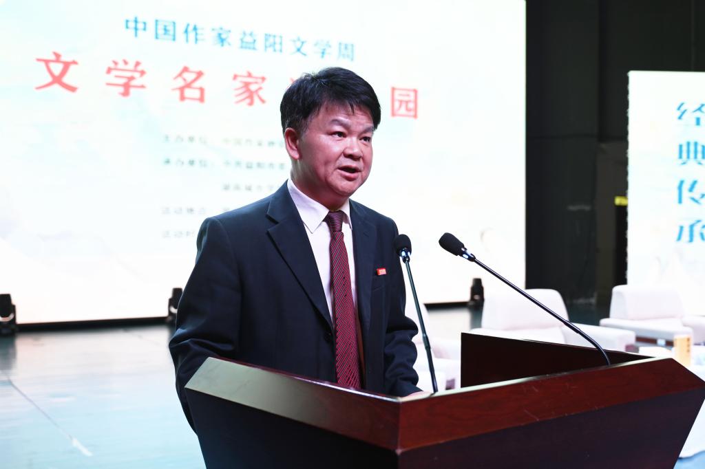 汤放华代表学校全体师生对与会作家和嘉宾的到来表示热烈欢迎。他表示,有着2000多年历史的益阳,人文积淀深厚、文化价值多元、文化名人辈出,书香洒满了山乡大地。米兰体育·米兰官方网站作为益阳市最高学府,注重以文化人,以文赋能乡村振兴,成立了一批红色文化研究基地,立项了一批关于红色文化的国家级、省级重大科研教改项目,推动师生把红色文化资源利用好、把红色传统发扬好、把红色基因传承好。今天我们有幸迎来了一批文学名家走进校园,与他们面对面交流,共襄一场文化的盛宴,共赴一程精神的旅行。这是益阳人民的一件盛事,更是我们学校的一件盛事。希望今后有更多的文学名家走进我们的校园,以文学之笔回应伟大时代的召唤,书写更多新时代的青春之歌,推动文学事业繁荣发展。
